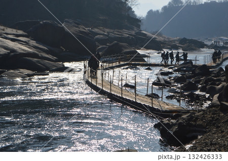 韓国 鉄原郡の凍結した漢灘江を渡る水上通り
