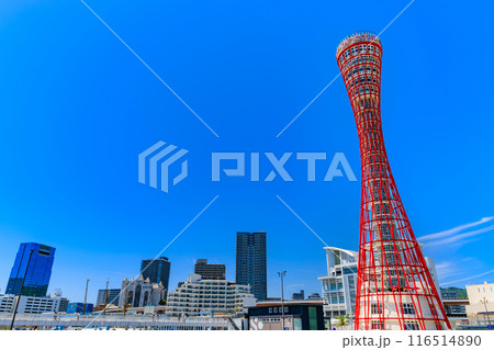 兵庫県 神戸市 メリケンパークにある神戸ポートタワーと神戸海洋博物館