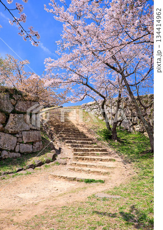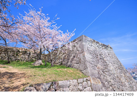 〈鳥取県〉米子城跡の桜 四重櫓台 小天守台石垣の隅角 4月
