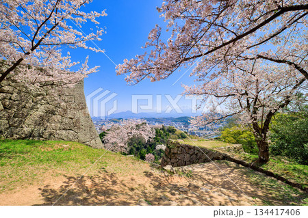 〈鳥取県〉春の米子城跡 大天守台から大山を望む風景 4月