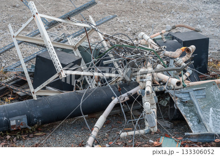 解体工事で切断した古い鉄骨の廃棄物