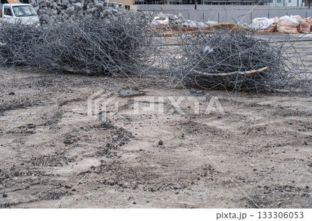 団地の解体工事現場の鉄筋