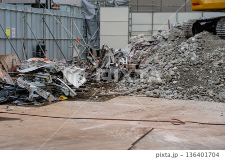解体工事現場 取り壊した瓦礫と金属くず