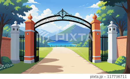 「幻想の秘境、黒鉄門と碧湖」