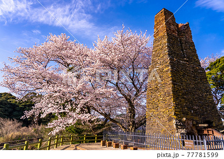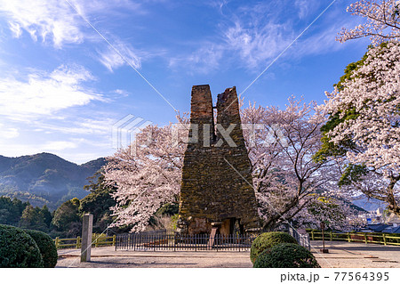 山口県萩市 満開の桜をバックの萩反射炉下部