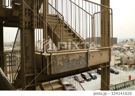 冬の鉄階段の柵 錆びている公園の鉄柵