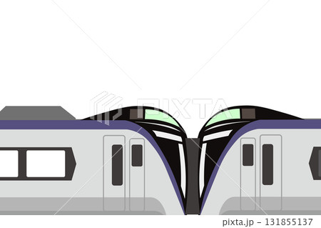 おもちゃ風のE353系電車の先頭車両同士が連結した背景イラスト