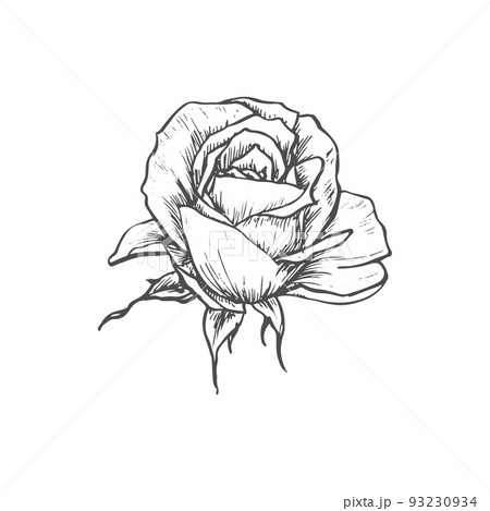 Bud of rose flower isolated sketch blossom. Vector floral blooming plant, tattoo design