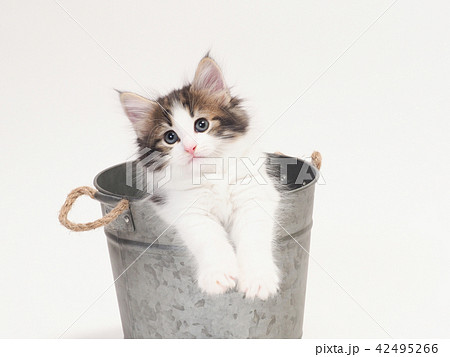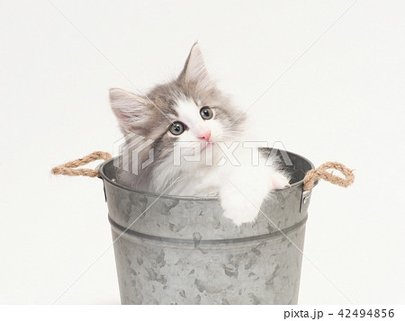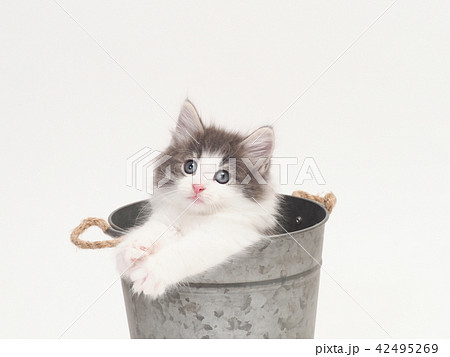 鉢カバーに入ったノルウェージァンフォレストキァットの仔猫