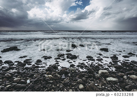 越前海岸 冬の日本海 荒波