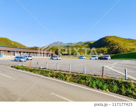 秋の鳥海山登山:鳥海鉾立ビジターセンター駐車場