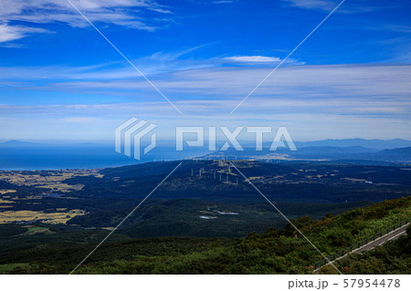 高原から海まで続く風車群