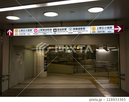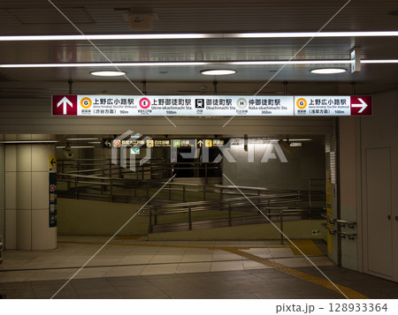上野中央通り地下歩道のJR線・地下鉄駅案内標識