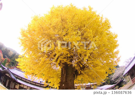 【コピースペース】紅葉八幡宮の黄色に染まった銀杏