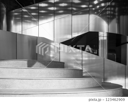Stair step with Metal tile wall shade shadow Lighting reflection Architecture details
