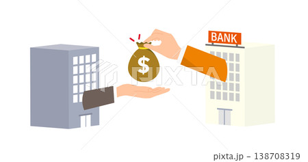 銀行と企業の資金提供イラスト、融資契約や事業資金の支援