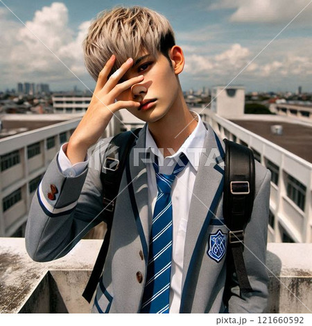銀髪の男子高校生