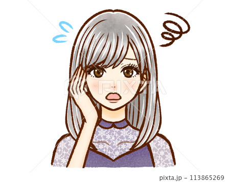 お洒落着の銀髪ロングヘアーの大人女性のイラスト素材