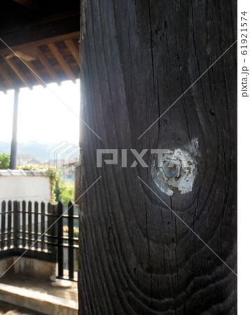 西南戦争の地 正念寺にの山門に残されている銃撃の跡 (熊本県玉東町)