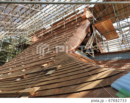 神社屋根の銅板葺き替え