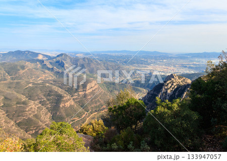 Beautiful view from the mountain of Montserrat in Catalonia, Spain