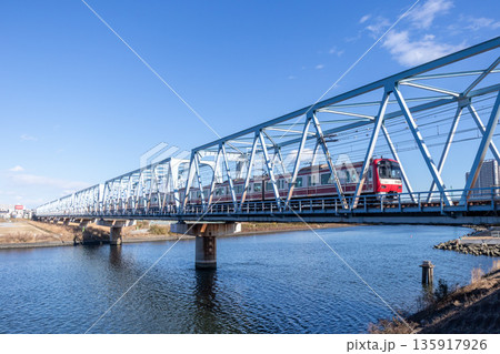 犬山橋を渡る名鉄電車 空港特急ミュースカイ