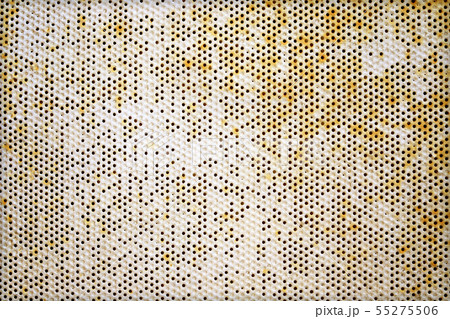 Close-up pattern of the holes of an old kitchen grater with rust elements. Grunge background
