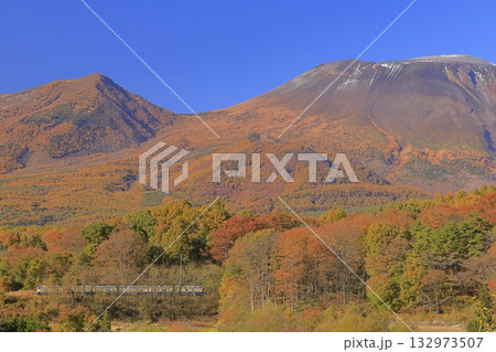 紅葉の妙高はねうまラインと初冠雪した妙高山