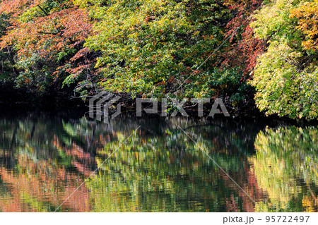 北海島苫小牧市、錦大沼公園内錦小沼の紅葉リフレクション【10月】