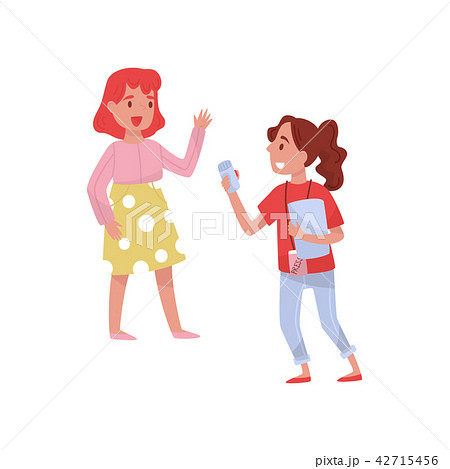 Friendship videos isolated cartoon vector illustration set. Grimacing for camera, making funny faces, filming dance video, teen girls singing with clenched fist like microphone vector cartoon.