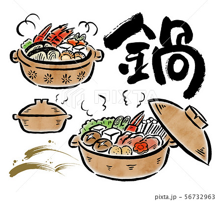 筆文字 寄せ鍋 食べ物 イラスト
