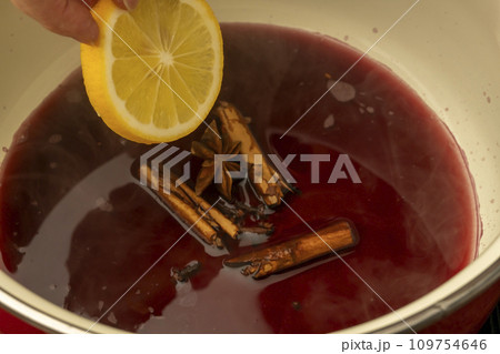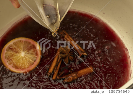 ホットワイン 赤ワイン ヴァンショ- 鍋 調理シーン