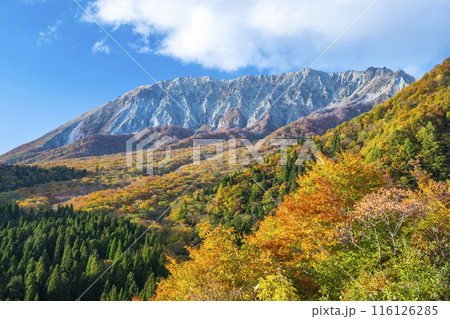 伯耆大山の南壁とその裾野に広がる紅葉(鍵掛峠展望台より展望)「日本百景」「日本百名山」