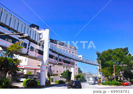秋晴れの神奈川県大船の街並み。モノレールが走る大船駅東口の風景