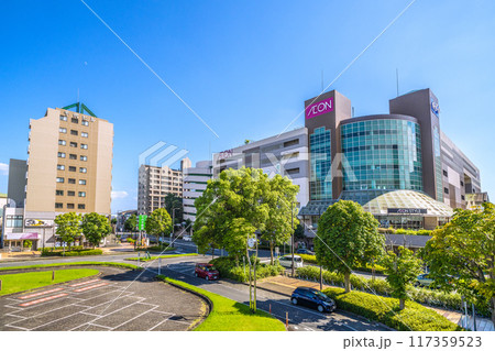 日本の千葉都市景観 千葉県千葉市緑区の土気駅前のショッピングモーなどを望む