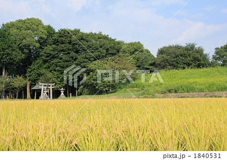 鎮守の森と秋の稲穂