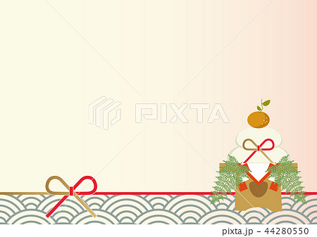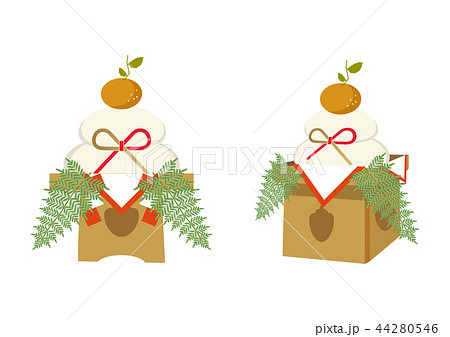新年の縁起物。鏡餅のイラスト。お供え物。お正月のイメージ。和柄のデザイン。