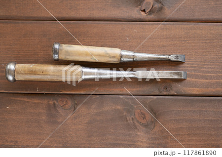 使い込まれた鑿のセット