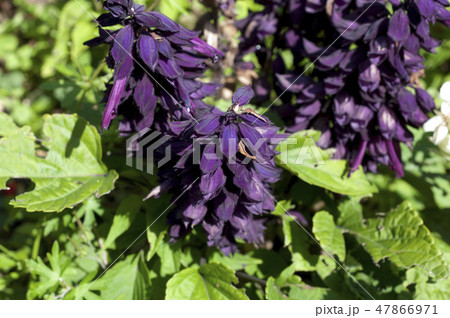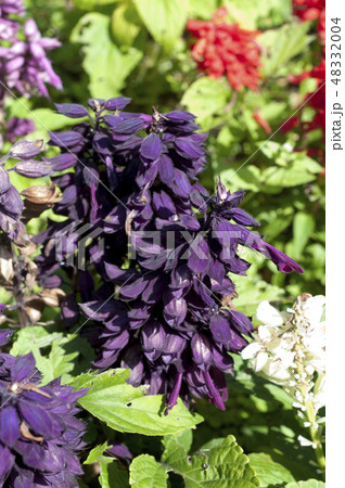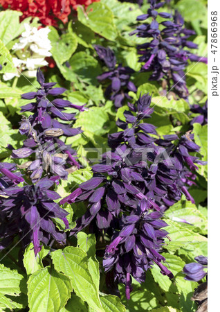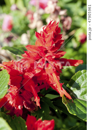 ブラジル原産、情熱的な赤い花を咲かせるサルビアの花。