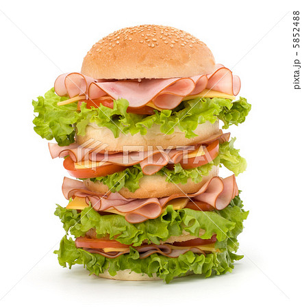 fast food baguette sandwich with lettuce, tomato, ham and chees