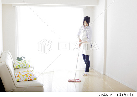 掃除カートで働くシニア