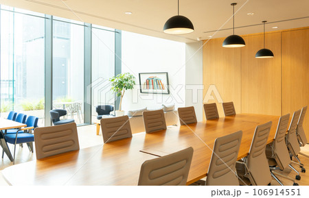 長机とパイプ椅子のある風景 面接、三者面談のイメージ