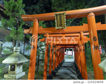 夜の川辺八幡神社境内社「金吉大明神」の鳥居