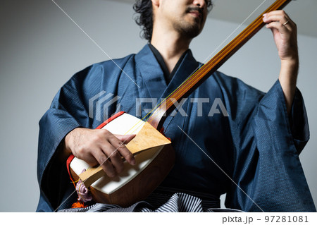 髭の男性の和楽器シリーズ 三味線