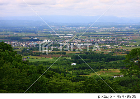 長官山から見る麓の農村地帯と札幌市街地の遠景