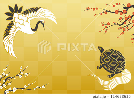 鶴と亀の背景イラスト素材 ベクター 和柄 敬老の日 年賀 金背景