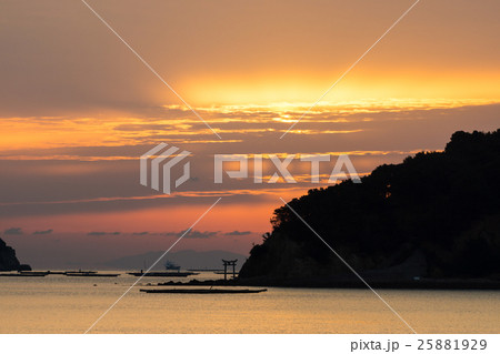 瀬戸内海の鳥居のある島から昇る太陽のイメージ