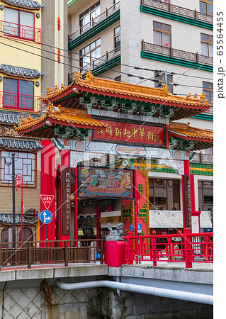 長崎県長崎市 長崎新地中華街の街並みと中華門