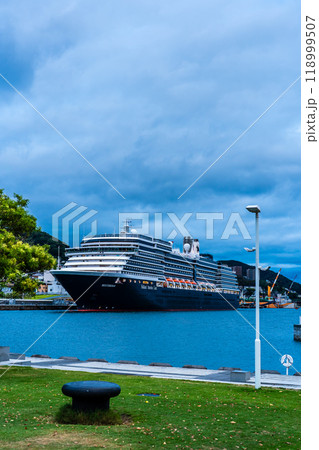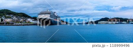 長崎港客船入港(Westerdam)水辺の森公園からの夕景 パノラマ【長崎市】