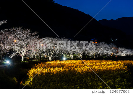 田結川の桜並木と菜の花のライトアップ【長崎県諫早市飯盛町】